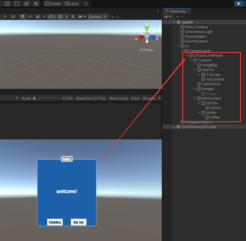 load a UI prefab, and dynamically bind the lua script, SetTxt